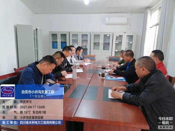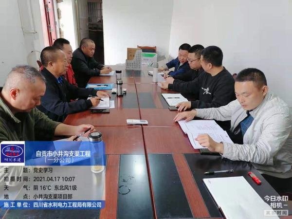 一分公司黨支部在自貢小井溝支渠項(xiàng)目部召開黨史學(xué)習(xí)教育會(huì)(2021.04.17)