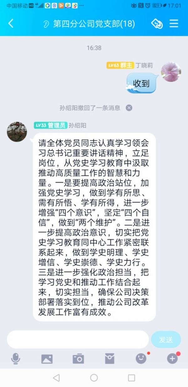 四分公司利用黨支部QQ群開展黨史學(xué)習(xí)教育