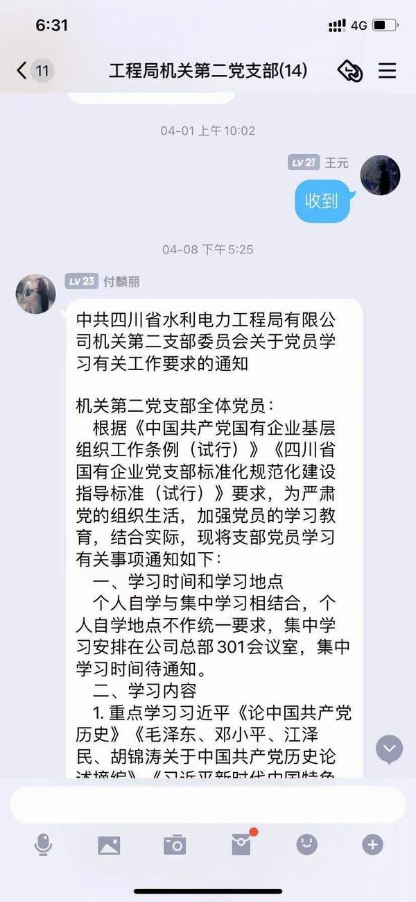 機(jī)關(guān)第二黨支部利用支部QQ群對黨史學(xué)習(xí)教育作出要求(2021.04.08)
