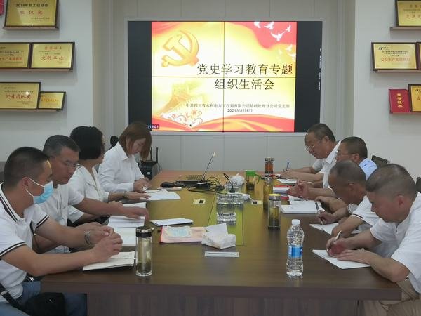 按照公司黨史學習教育專題組織生活會通知要求,在精心籌備基礎上,基礎分公司黨支部于2021年8月5日組織黨員召開黨史學習教育專題組織生活會。黨支部書記舒建奎同志主持會議。
