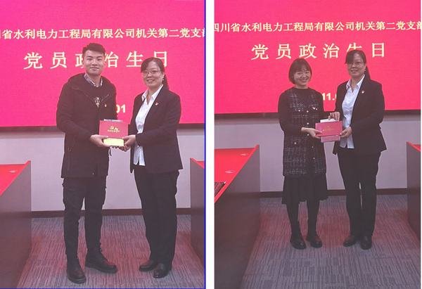 會議組織學習了《中國共產黨廉潔自律準則》《中國共產黨問責條例》,學習貫徹水發集團黨委書記、董事長鐘杰同志10月18日在集團黨建工作推進會上的講話精神。黨支部為過政治生日的2名黨員贈送了政治生日賀卡和書籍,付麟麗對過政治生日的黨員送上寄語,勉勵大家要時刻牢記黨員身份,增強黨員意識,注重黨性修養。通過集體“政治生日”活動,進一步喚醒了入黨初心,激發黨員同志的責任感和使命感。