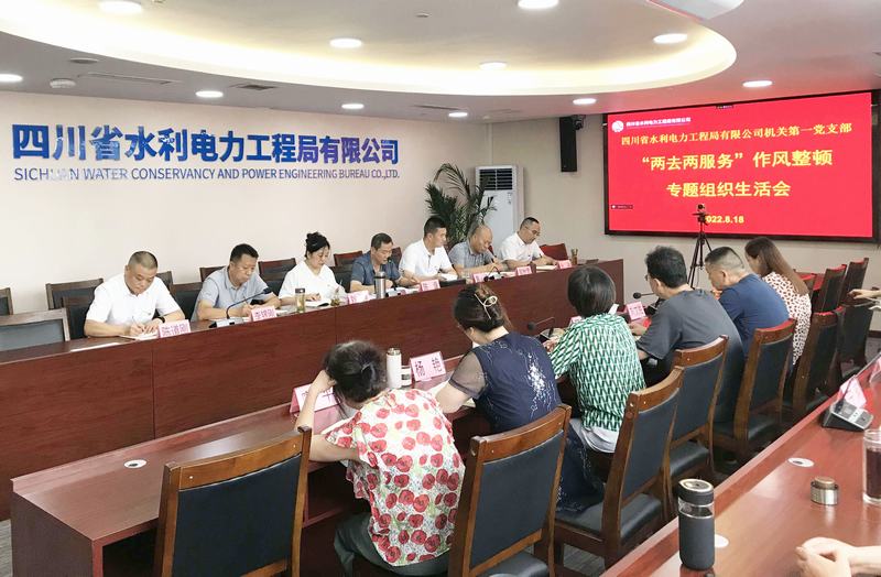 2022年8月18日下午,機關第一黨支部在公司總部大會議室、資陽辦公區301會議室以視頻形式召開“兩去兩服務”作風整頓轉入“抓整改重鞏固看成效”階段專題組織生活會。會議由支部書記陳章主持,支部全體黨員及支部涵蓋部門非黨員職工參加會議。