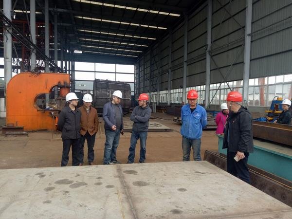 在生產車間,趙曉輝一行參觀了金屬結構廠的生產工藝,生產流程,質量檢驗及安全文明施工情況。交流會上,大家以誠相見,相互探討生產過程中所遇到的困難以及質量檢驗方面水利水電鋼閘門制造安裝中“國標”與“歐標”的區別。雙方還就生產許可證更換流程及其它合作事項進行了深入溝通。