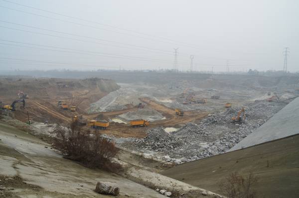 2014年新春伊始,盡管凜冽的寒風夾雜著淅淅瀝瀝的雨雪,卻無法阻擋奮戰在河道整治工地的人們應急整治的步伐。在消力池開挖及排水點上,護坦砼破碎拆除正在進行;左岸河道上,疏浚開挖的運輸車忙碌穿梭;篩分站安裝、拌合站安裝……各施工點、各類施工設備、各種施工人員在風雪中斗志昂揚,忙碌卻井然有序,展現出一派熱烈而緊張的施工壯觀場景。