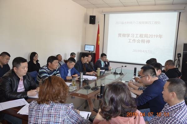 4月7日下午,第四工程處在毗河項目部會議室召開會議,貫徹學習工程局2019年工作會精神。會議由四處黨支部書記、工會主席方兵主持,處級領導、各部門負責人及毗河項目部全體職工參加會議。