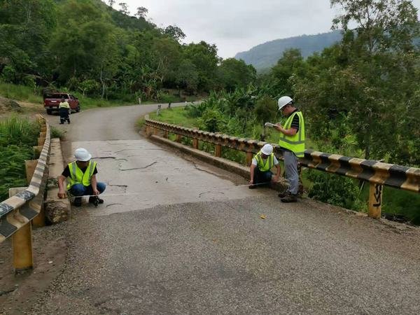 項目部進(jìn)場人員根據(jù)設(shè)計單位昆勘院提供的《錫林努姆項目檢測計劃》,對羅納1和錫林努姆兩座待改造電站進(jìn)行結(jié)構(gòu)尺寸及平面位置的測量檢查,為下一步對兩電站的改造設(shè)計提供了基礎(chǔ)數(shù)據(jù)。同時,項目部組織人員對巴新首都莫爾茲比港至工地現(xiàn)場所有的橋梁進(jìn)行了檢查,詳細(xì)記錄每座橋梁的位置、橋面寬度及結(jié)構(gòu)形式,并初步擬定了橋梁的加固計劃,以確保項目施工設(shè)備及工程金屬結(jié)構(gòu)、機(jī)電設(shè)備的順利進(jìn)場。