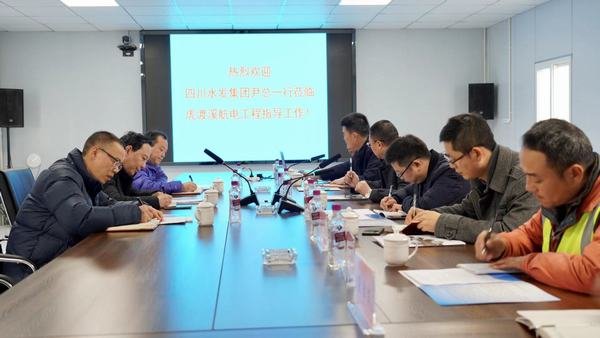 現(xiàn)場檢查后,尹曉東一行在項(xiàng)目部會(huì)議室聽取了工程局公司及設(shè)計(jì)院公司關(guān)于虎渡溪項(xiàng)目建設(shè)管理的專題匯報(bào)。代勇對(duì)尹總一行蒞臨項(xiàng)目部檢查指導(dǎo)工作表示歡迎和衷心感謝,并談到,虎渡溪項(xiàng)目是工程局改制后承建的第一個(gè)較大水電項(xiàng)目,項(xiàng)目施工管理嚴(yán)格落實(shí)集團(tuán)公司和鐘杰董事長要求,嚴(yán)格按照標(biāo)準(zhǔn)化要求進(jìn)行建設(shè)管理,公司通過該項(xiàng)目的實(shí)施著力在水電項(xiàng)目施工管理上再上新臺(tái)階,進(jìn)一步提升公司“水利鐵軍”的品牌形象。鄒世界匯報(bào)了項(xiàng)目概況、工程建設(shè)、質(zhì)量管理、安全文明施工、環(huán)保水保、目標(biāo)任務(wù)完成等情況以及2021年工作思路。羅濤介紹了項(xiàng)目設(shè)計(jì)方面的主要情況。