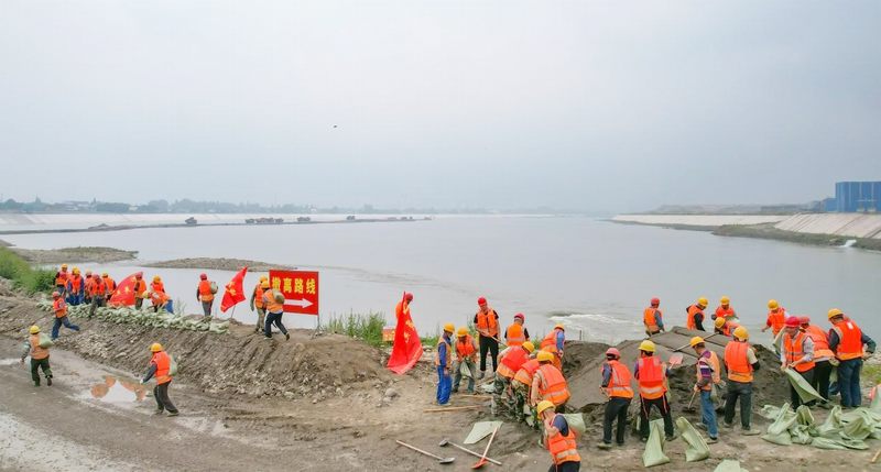 此次演練活動(dòng)地點(diǎn)在青神縣岷江虎渡溪航電樞紐工程閘壩二枯圍堰部位,按照演練應(yīng)急方案,演練環(huán)節(jié)主要內(nèi)容為:二枯圍堰船閘等部位正在施工,巡查人員發(fā)現(xiàn),二枯上游圍堰外側(cè)河道水位猛漲有漫壩的可能,現(xiàn)場(chǎng)情況十分危急,施工作業(yè)人員生命和國(guó)家財(cái)產(chǎn)安全面臨嚴(yán)重威脅。模擬場(chǎng)景一:應(yīng)急搶險(xiǎn)人員及設(shè)備撤離至指定安全位置;模擬場(chǎng)景二:撤離人員在撤離途中有人受傷處置場(chǎng)景;模擬場(chǎng)景三:應(yīng)急隊(duì)員用防洪沙袋加高圍堰。繼續(xù)跟蹤監(jiān)測(cè)水位險(xiǎn)情情況直至水位下降安全演練結(jié)束。本次演練活動(dòng),在參建各方配合下,各演練工作組動(dòng)作迅速、密切配合、銜接有序,為搶險(xiǎn)救災(zāi)爭(zhēng)取了寶貴時(shí)間。