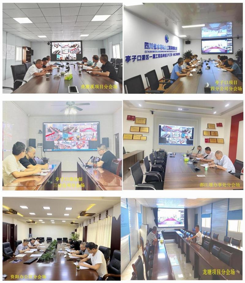 會議采取“現場+視頻”方式召開。主會場設在公司成都總部,資陽辦公區、都江堰辦事處、亭子口項目部、龍塘項目部、虎渡溪項目部、小井溝支渠項目部設分會場。公司領導李銀剛、唐驚濤、茍仕聰、鄒世界、陳盛華、夏永紅出席會議。公司領導、總部各部門主要負責人在主會場參會,各單位負責人、項目部相關人員在視頻分會場參會。