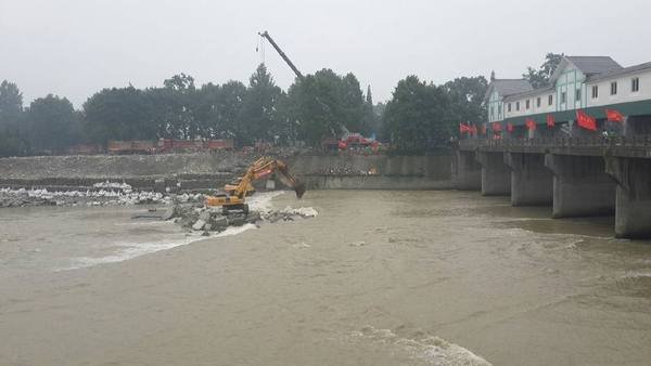 四川省水利電力工程局防汛機動搶險隊急災區(qū)之所急,牢記責任與使命,時刻準備著參加抗洪救災。此次洪災,廳直水管單位受損最嚴重、影響最大的當屬人民渠一處,人民渠一處人民渠干渠穿石亭江涵洞工程及人民渠一處清白江錦水河取水樞紐遭受嚴重洪災損毀。按照水利廳指派我局參與人民渠一處應急搶險的指令,工程局局長、黨委書記鄔清富迅即啟動防災救災應急預案,組建了親自擔任總指揮的防洪搶險指揮部,并指派副局長董蜀良擔任前線指揮長,總工程師汪輝德、局長助理鄒世界任前線副指揮長。7月11日和13日,先后調(diào)集組織230余名搶險隊員,50臺(套)大型應急搶險設(shè)備及指揮車、發(fā)電機等各種應急搶險保障物資,集結(jié)奔赴兩處受災現(xiàn)場,緊急投入抗洪搶險工作。