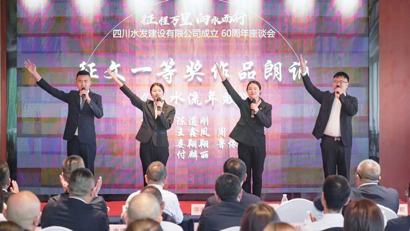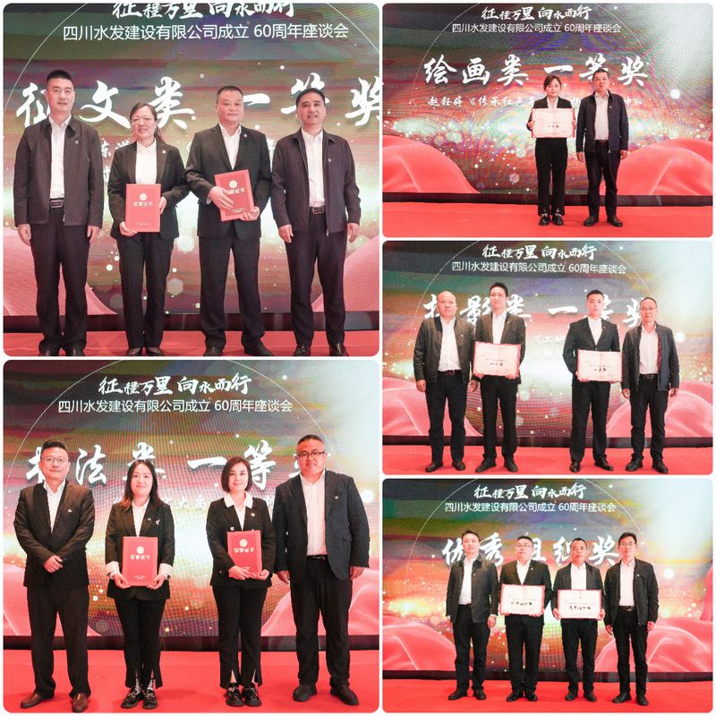 會上,發(fā)布了公司60周年大事記《征程》、畫冊《向水而行》,并對公司企業(yè)文化品牌進行釋義,播放企業(yè)宣傳片《水利鐵軍 匠筑不凡》,觀看了舞蹈《筑夢》視頻。同時,現(xiàn)場為公司成立60 周年主題征文和書畫攝影比賽活動優(yōu)秀組織獎獲獎單位及一等獎獲得者頒發(fā)證書,并對詩歌類一等獎?wù)魑淖髌愤M行了朗誦。