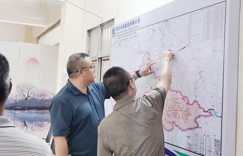 夏條綠已密,朱萼綴明鮮。調(diào)研組一行先后去到黃桷灣倒虹管、黃巔咀隧洞、向家壩項目部營地、瀘江橋渡槽現(xiàn)場察看,聽取了工作人員的講解。