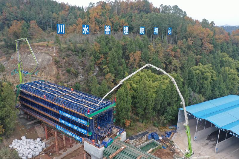 沖刺年末收官!亭子口灌區一期工程I標最長渡槽第一跨槽身順利澆筑