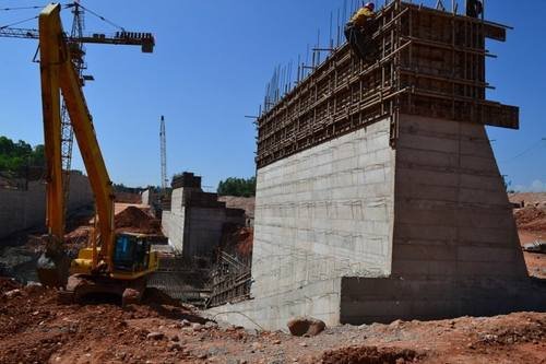 1、壓力前池底板共10個塊號,已完成7個塊號;前池右側擋墻1#、2#、3#擋墻已完成,4#擋墻還差3m到頂高程,5#擋墻還差7m到頂主高程,6#擋墻還差7m到頂高程;前池左側溢流堰完成工程量30%;溢流堰消力池未動工。