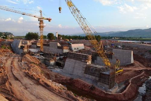 3、尾水渠左邊1號擋墻砼澆筑到1910m高程(設(shè)計高程1914.3m),2號擋墻澆筑完成;右邊5號擋墻砼澆筑到1907.19m高程(設(shè)計高程1915.8m),6號擋墻澆筑完成,7號擋墻澆筑到1911m高程。