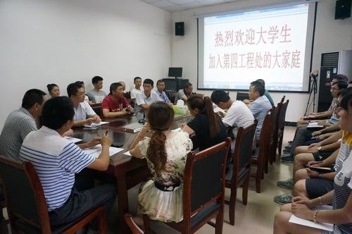 2015年7月26日,局四處在毗河工程項目部一樓會議室召開大學(xué)生歡迎會。項目部領(lǐng)導(dǎo)、項目部各科室負(fù)責(zé)人、項目部主要技術(shù)人員以及新到大學(xué)生共計24人參加會議。受局長助理、四處處長茍仕聰委托,四處副處長、毗河項目部常務(wù)副經(jīng)理羅茂林主持歡迎會。
