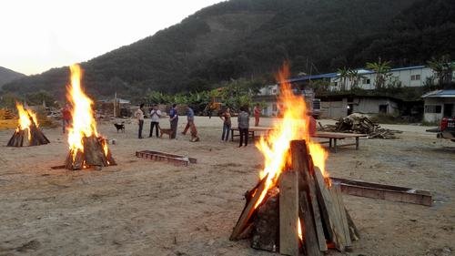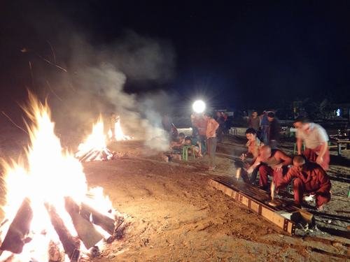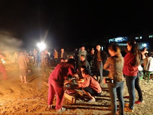 傍晚,在結(jié)束了一天的工作之后,大家興高采烈把燒烤備用物品搬到生活區(qū)空地上。點(diǎn)燃篝火,項(xiàng)目部職工、各施工隊(duì)民工以及當(dāng)?shù)鼐挼楣と藝谝黄穑贿厽疽贿呴e談,整個(gè)場(chǎng)面十分熱鬧。特別值得一提的是這次燒烤從工具的準(zhǔn)備、食材的處理、味道的調(diào)制到最后烤熟都是大家自親自動(dòng)手,互相配合,共同完成。因此,吃到嘴里不僅有燒烤的芳香還有滿滿的成就感。