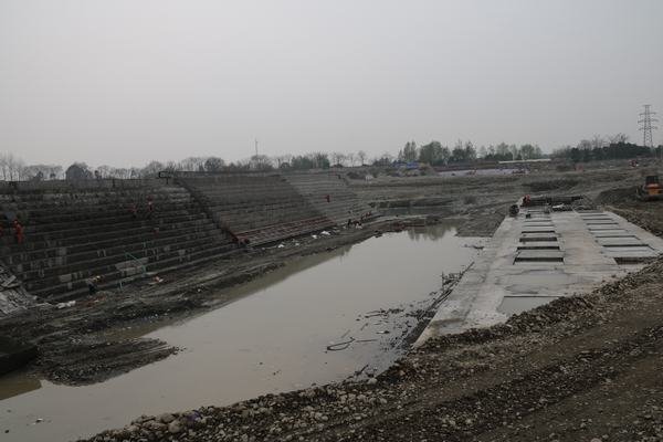 西河順江堰引水樞紐整治工程位于新津縣五津鎮(zhèn)文武村,承擔(dān)著向新津縣城區(qū)提供生活、生產(chǎn)和環(huán)境供水以及向通濟(jì)堰灌區(qū)補(bǔ)水任務(wù)。建設(shè)內(nèi)容主要包括拆除重建泄洪沖砂閘、進(jìn)水閘及攔河壩,對(duì)上下游左右岸堤防基礎(chǔ)及堤防修復(fù)。重建工程采用閘壩結(jié)合,在左岸布置有采用新型材料的C10膠結(jié)顆粒料砼溢流壩(屬國(guó)內(nèi)筑壩新技術(shù)),右岸布置有泄洪沖砂閘、進(jìn)水閘,并修復(fù)上下游左右岸堤防基礎(chǔ)及堤防1310米。該工程于2015年12月4日開工,目前完成工程投資60%以上。