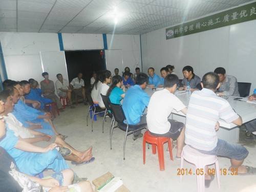 2014年是工程局承前啟后的一年,局勝利召開了 “三代會”和“工作會”。為了全面貫徹學(xué)習(xí)會議精神,讓職工真實了解全局形勢,在局新一屆領(lǐng)導(dǎo)班子的帶領(lǐng)下,堅定信心,奮力拼搏,努力開創(chuàng)和譜寫工程局改革發(fā)展新篇章,2014年5月8日和5月10日,第四工程處在工程非常繁忙的施工黃金時段,利用晚上難得的雨后休息時間,分別在老撾色薩拉龍灌溉項目及遂寧市市城區(qū)應(yīng)急備用水源項目部召開職工大會,貫徹學(xué)習(xí)局“三代會”和“工作會”會議精神。