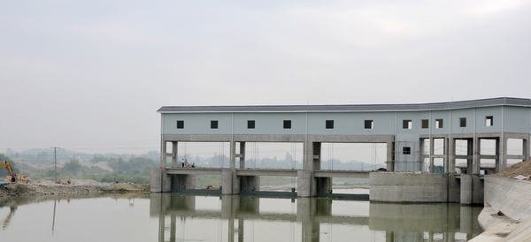 順江堰引水樞紐工程位于新津縣五津鎮(zhèn),主要由2孔進水閘、3孔泄洪沖沙閘、270米長的攔河壩、1310米的左右岸上下游堤防等組成,合同金額為3565.8萬元。完成主要實物工程量:砂卵石開挖37萬方,回填11萬方,混凝土澆筑6.7萬方,膠凝顆粒料填筑2.7萬方,砼孔樁19根,鋼筋制安460噸,房屋建筑557平米,閘門制作安裝85噸,啟閉機安裝5臺。