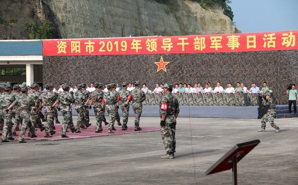 2019年8月1日,資陽市2019年“八•一”軍事日活動在四川省救援隊倉庫舉行,市民兵應急營全體官兵全程參加。資陽市主要領導干部參加了活動。