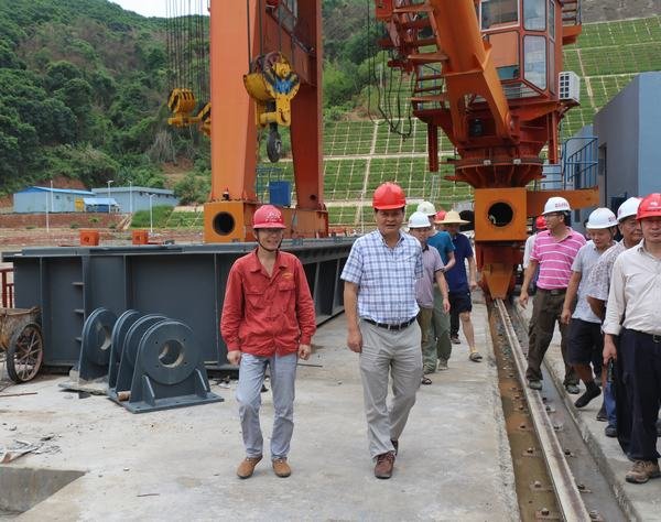 6月1日上午,緬甸四特區(qū)建設(shè)部蔣部長(zhǎng)、緬甸四特區(qū)南板縣縣長(zhǎng)、業(yè)主副指揮長(zhǎng)以及監(jiān)理、設(shè)計(jì)、施工、監(jiān)測(cè)、運(yùn)行方代表到達(dá)現(xiàn)場(chǎng),共同參加此次蓄水儀式。中午12點(diǎn)整,隨著蔣部長(zhǎng)一聲令下,沖沙閘工作閘門(mén)緩緩落下,沖砂泄槽出口奔騰的洪水戛然而止,勐瓦水電站順利完成下閘蓄水的建設(shè)目標(biāo)。該目標(biāo)的實(shí)現(xiàn),成為勐瓦水電站建設(shè)重要的里程碑。